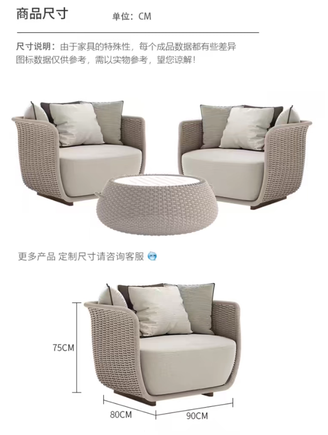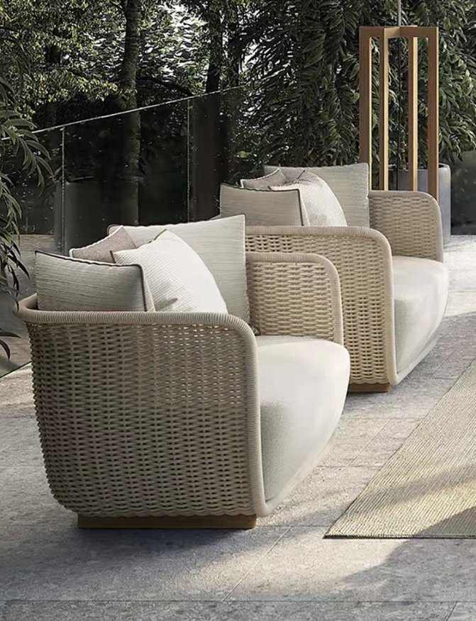 戶外庭院花園(yuán)藤編沙發售樓部設計師室外露(lù)台躺(tǎng)椅別墅露天家具