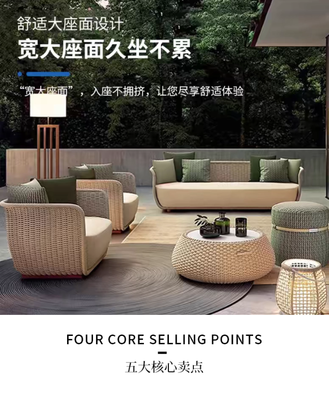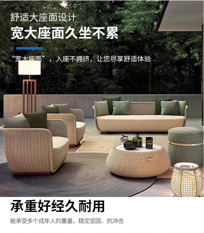 戶外休閑藤椅庭(tíng)院露台藤編沙發茶幾(jǐ)簡(jiǎn)約(yuē)別墅花園防水防曬家具